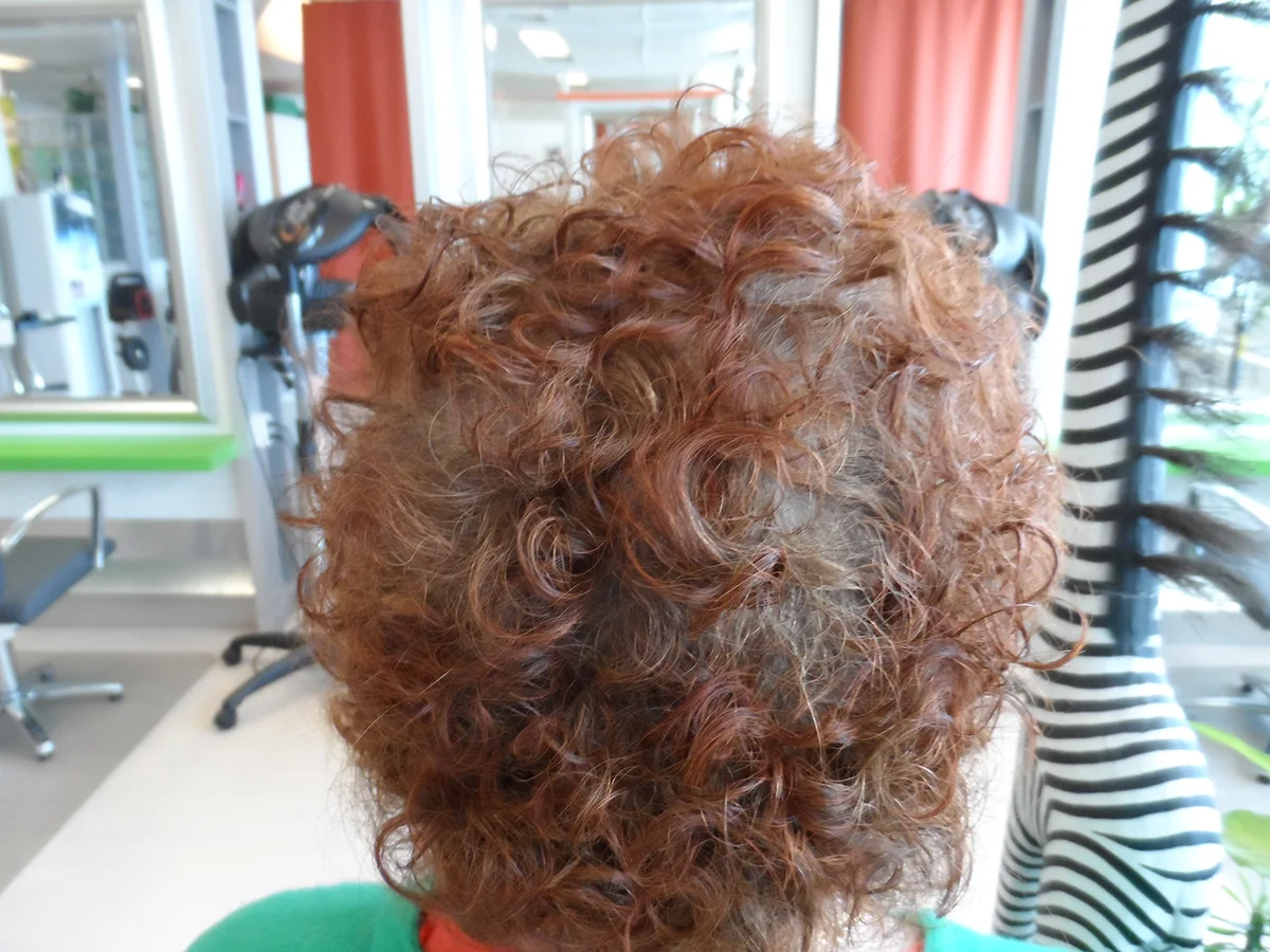 Tilanne vuoden jälkeen, hiukset muuttuivat luonnonkiharoiksi.