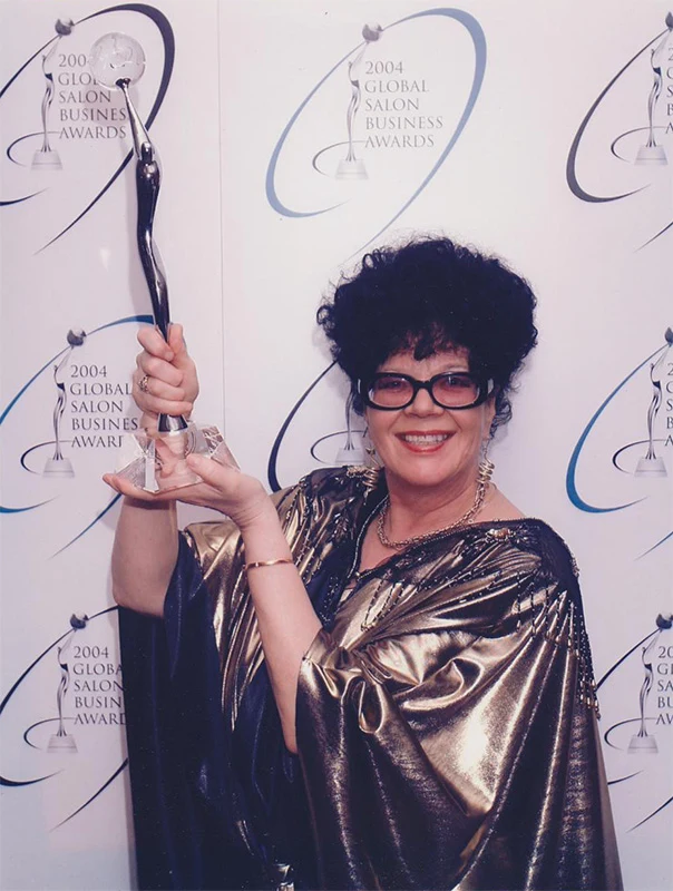 Annikki Hagros-Koski sai ”Hiusalan Oscar-palkinnon” Lontoossa, SALON ENTREPRENEUR OF THE YEAR, multi-unit gategory, 2004 Global Salon Business awards kilpailussa.